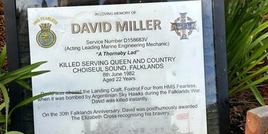A charming restful garden located above Stanley cemetery commemorating those who died so we may live in peace. With carefully placed benches so you can contemplate in private. Each tree is dedicated to our Armed Forces and Civilian heroes who died during the Falklands war in 1982 and beyond.